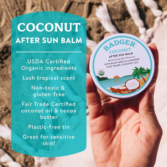 Coconut after Sun Balm with Organic Cocoa Butter & Shea Butter, Rescue Balm, Soothing & Cooling Balm for Tight Dry Skin after Sun Exposure, 2 Oz